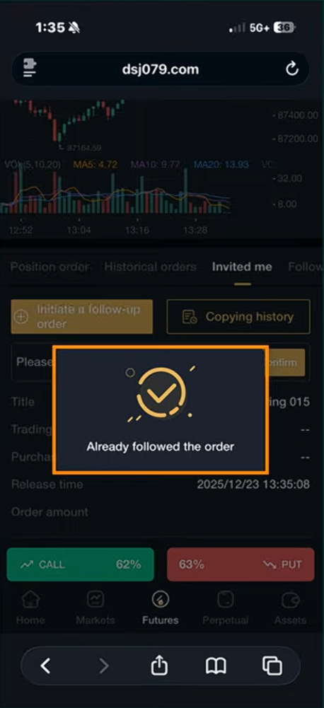 Ua e sauni nei e mulimuli i le trade signal.